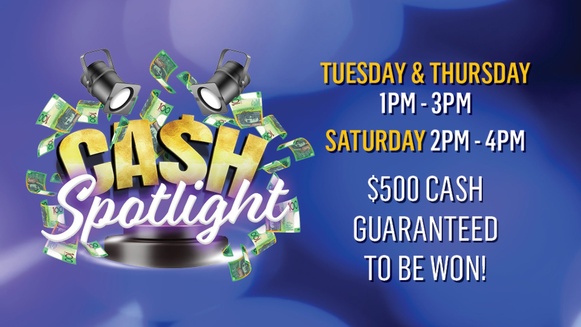 Join us every Tuesday, Thursday or Saturday for Cash Spotlight at Brothers Cairns!