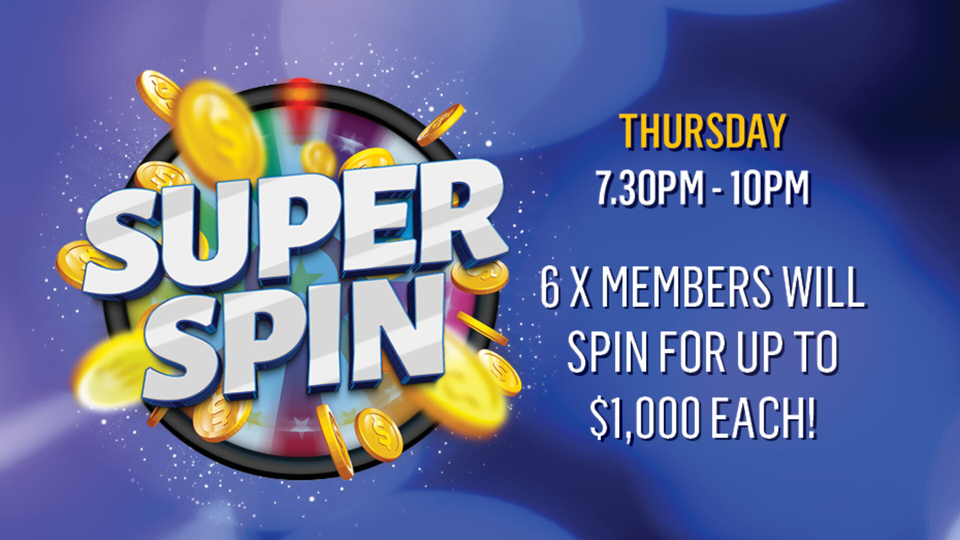 Each week, 6x lucky members will spin the wheel twice and try to win up to $1,000 CASH. Plus, land on a star to double your prizes!