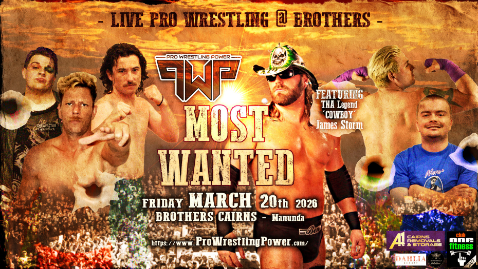 Join us at Brothers Cairns on Friday 20th March for Pro Wrestling Power | Most Wanted! This will be featuring Former TNA Superstar Cowboy James...